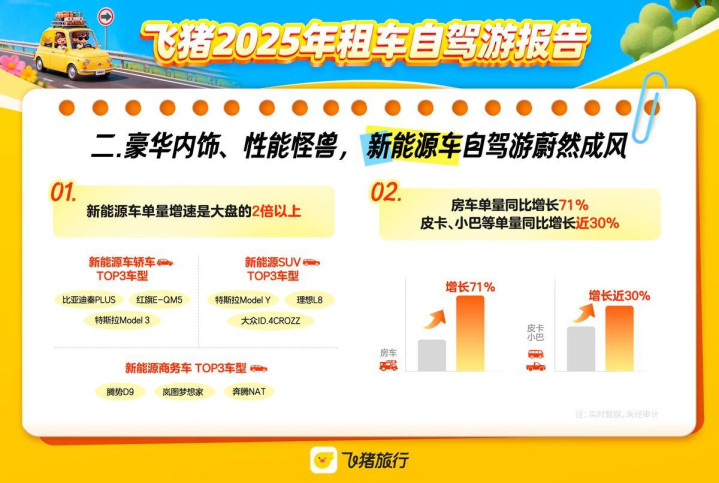 根据飞猪发布的2025年《租车自驾游报告》,2025年平台上的租车订单量保持强劲增长态势,90后用户规模继续扩大,占比接近五成;00后用户增速更快,订单量同比增长近40%。